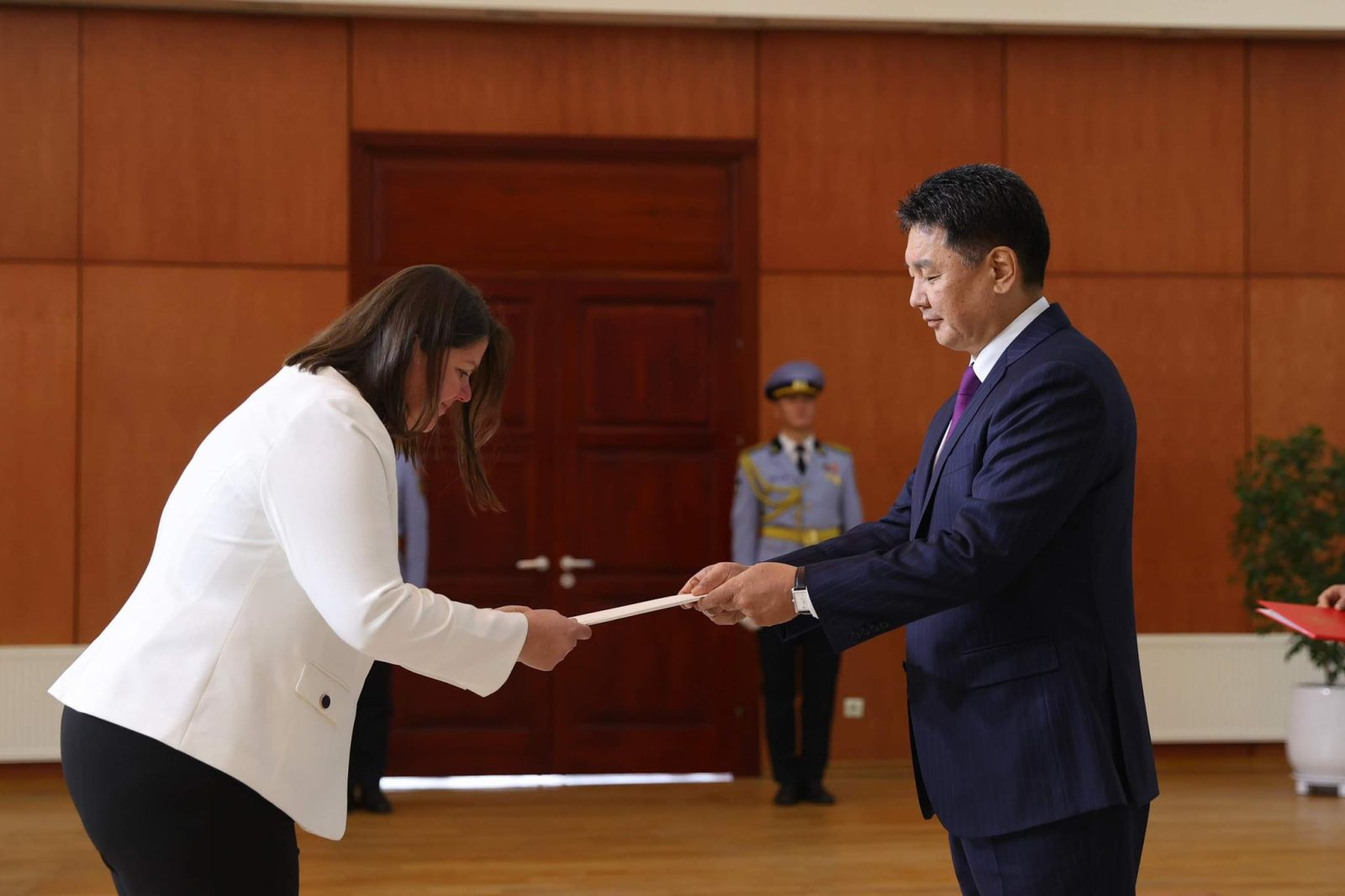 Канад Улсаас Монгол Улсад суух Онц бөгөөд Бүрэн эрхт Элчин сайд Сандра Шуфани Монгол Улсын Ерөнхийлөгч Ухнаагийн Хүрэлсүхэд Итгэмжлэх жуух бичгээ өргөн барив.